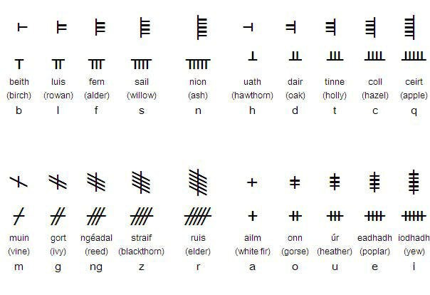 The Celtic Tree Calendar links to the Ogham (oh-am) alphabet - an ancient Irish alphabet used during the 5th to the 9th Centuries and is considered a significant part of Irish Culture. The alphabet consists of twenty characters or feda (old Irish for tree), formed by parallel strokes on either side of or across a continuous line. The letters are called feda ("trees") or nin ("forking branches") because of their shape.