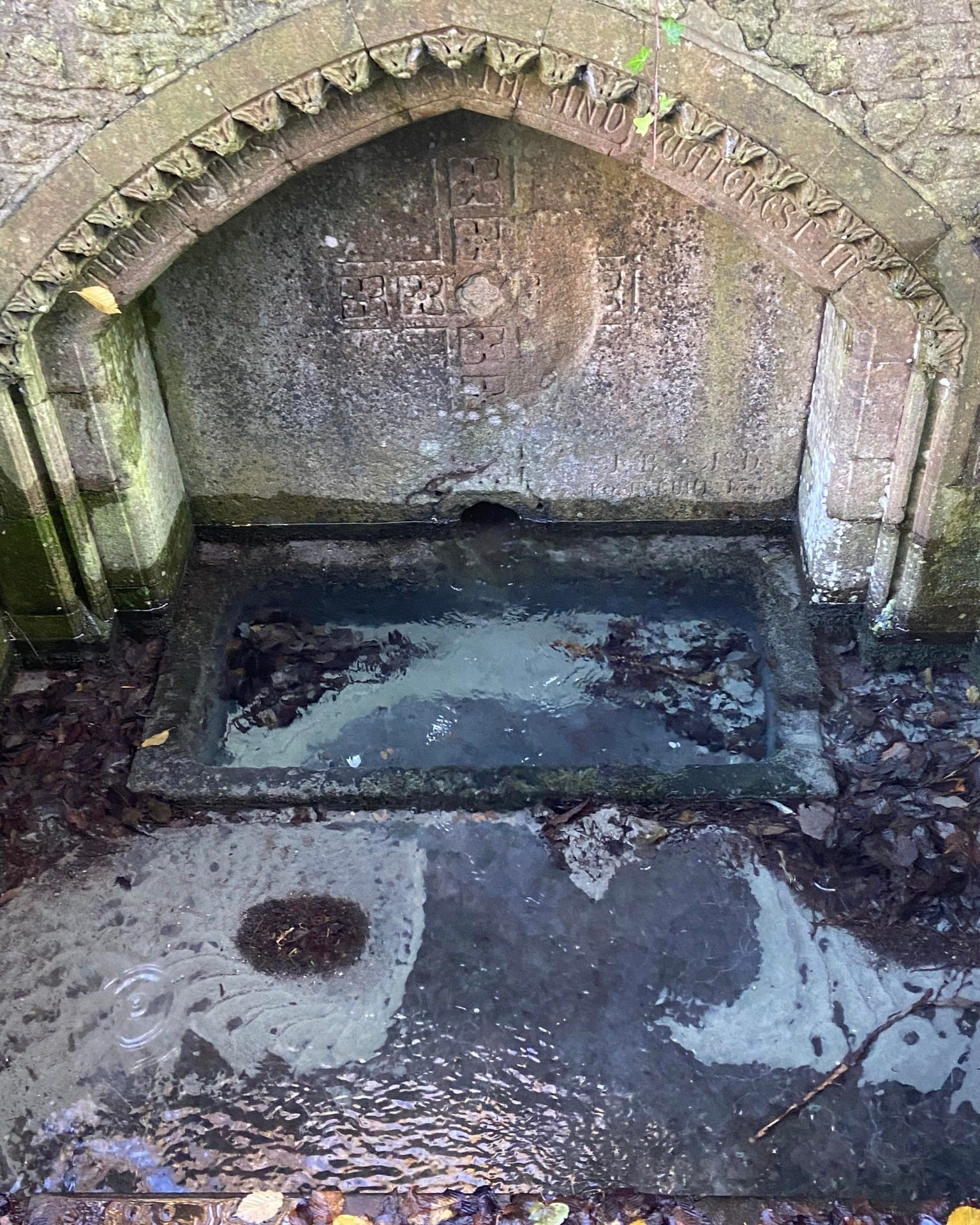 I placed my feet within the well chamber at Cattistock, which was full of dead bits of tree and plant material deposited by wind and bird. Slippery steep steps lead down to the chamber, so not that easy to gain access, but a case of ‘needing’ to just do it. You know?